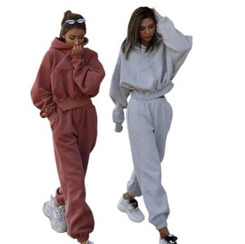 W1200 ensemble de survêtement en velours pour femmes, deux pièces, vêtements chauds, à capuche, manches longues, manteau, haut, pantalon, costume de sport