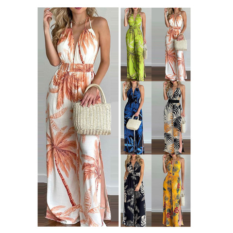 W3475 Combinaisons imprimées à la mode Combinaisons décontractées dos nu sans manches pour femmes Barboteuse à jambe large et taille haute