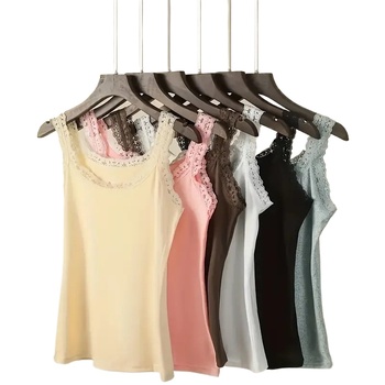 고탄성 플러스 사이즈 크루 넥 조끼 자르기 캐미솔 편안한 단색 뜨개질 여성용 레이스 트리밍 탱크 탑